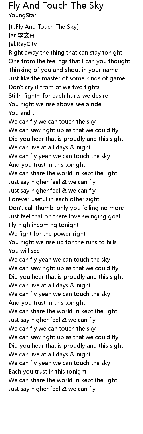 | [01:20.77] | We can fly yeah we can touch the sky |