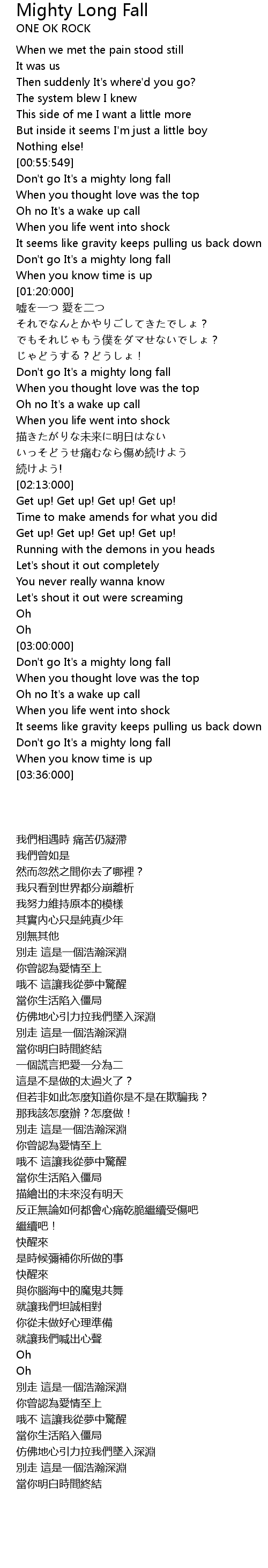 | [03:30:000] | Don't go It's a mighty long fall |