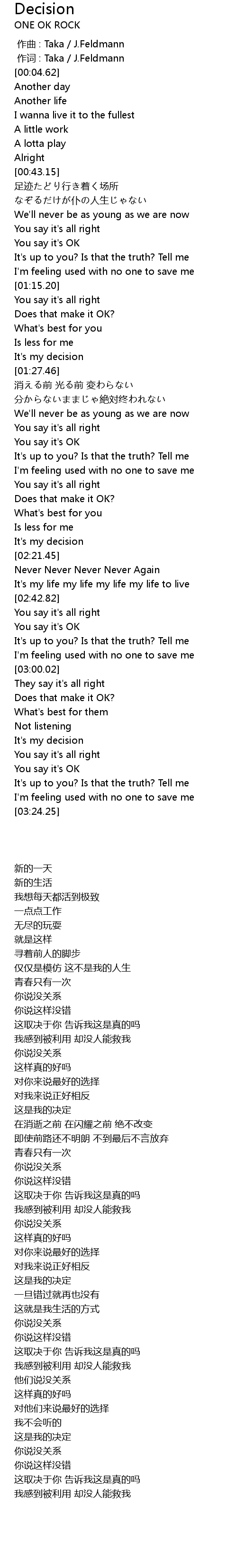 | [00:01.00] | 作词 : Taka / J.Feldmann |