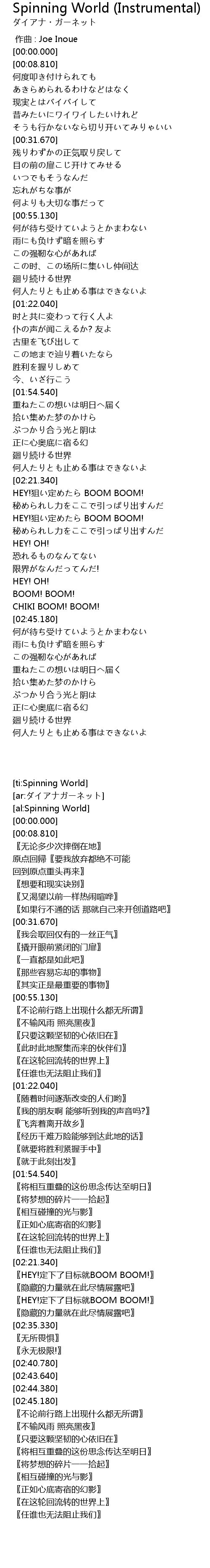 | [03:15.230] | 廻り続ける世界 |
