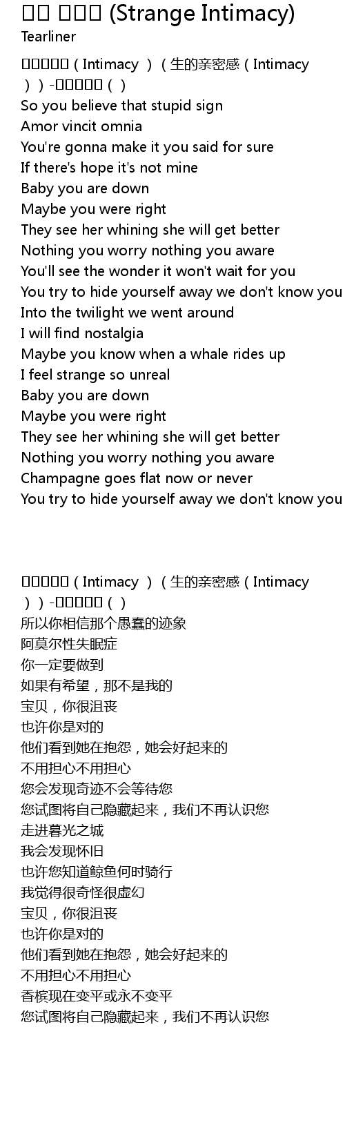 | [00:00.00] | 낯선친밀감(Intimacy )(生的亲密感(Intimacy ))-티어라이너() |