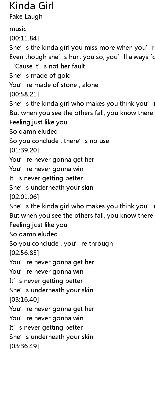 | [02:18.55] | She’s the kinda girl who makes you think you’re meant for her |