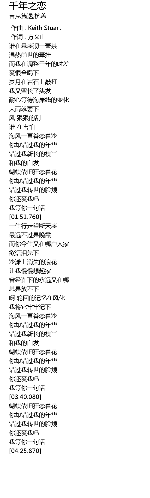 | [00:20.570] | ér wǒ zài tiáo zhěng qiān nián de shí chà |