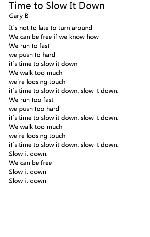| it´s time to slow it down, slow it down. | |