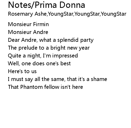 | Song | Notes/Prima Donna |