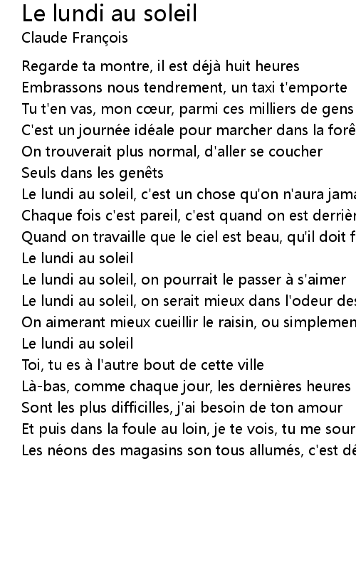 | Song | Le lundi au soleil |