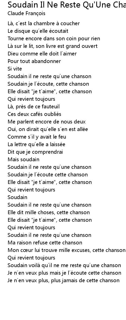 | Soudain voilà qu il ne me reste qu une chanson | |