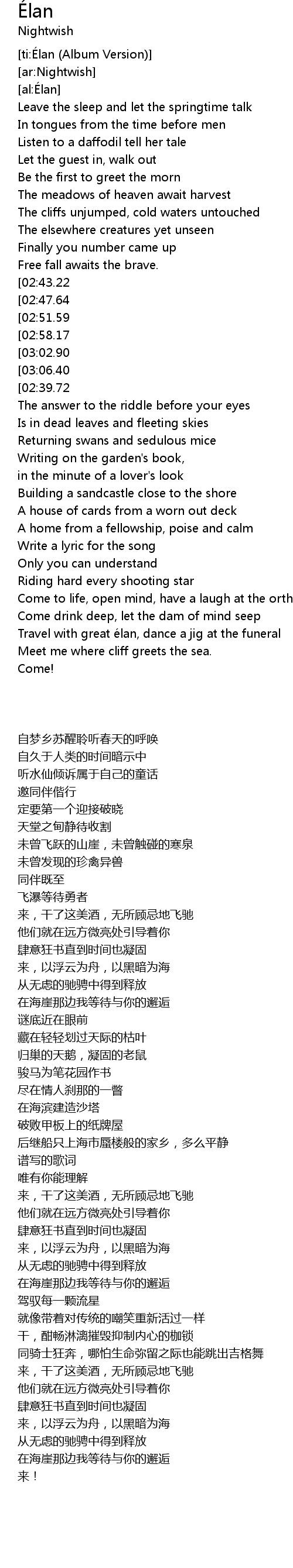 | [03:39.00] | Travel with great é lan, dance a jig at the funeral |