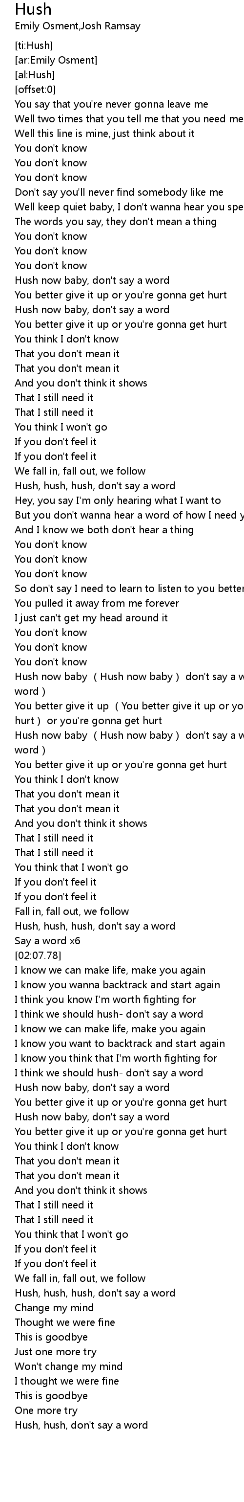 | [03:11.62] | Hush, hush, hush, don't say a word |