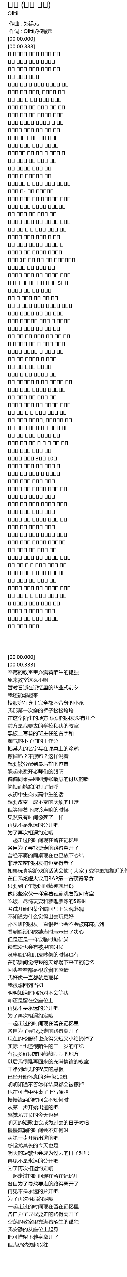 | [03:17.000] | 앞으론 내가 다시 못 올 곳 정든 교실 |