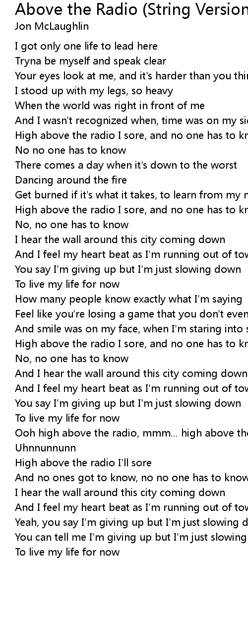 Ooh high above the radio, mmm... high above the radio |