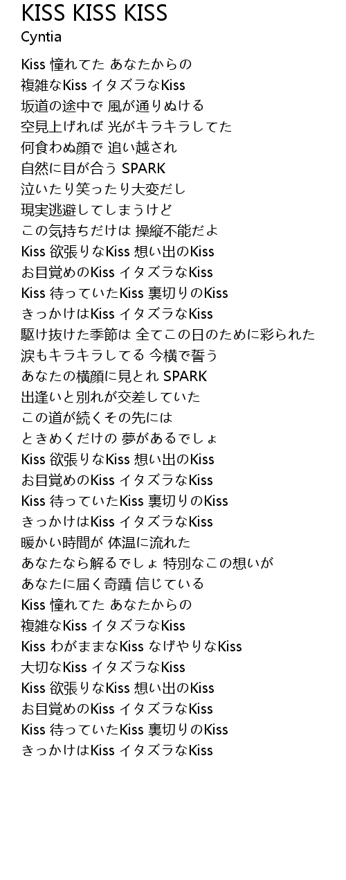 | Kiss yù zhāng Kiss xiǎng chū Kiss | |