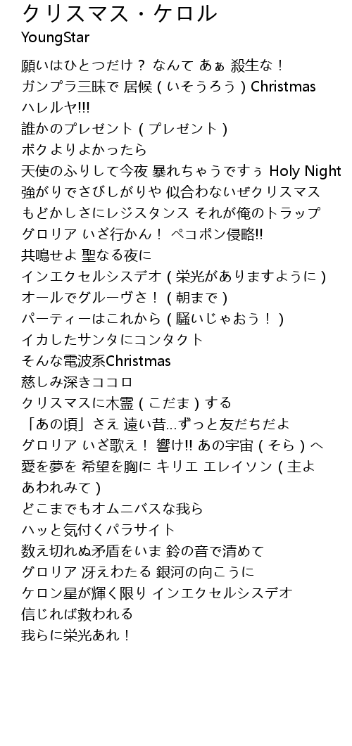 | [00:27.000] | ガンプラ三昧で 居候(いそうろう)Christmas |