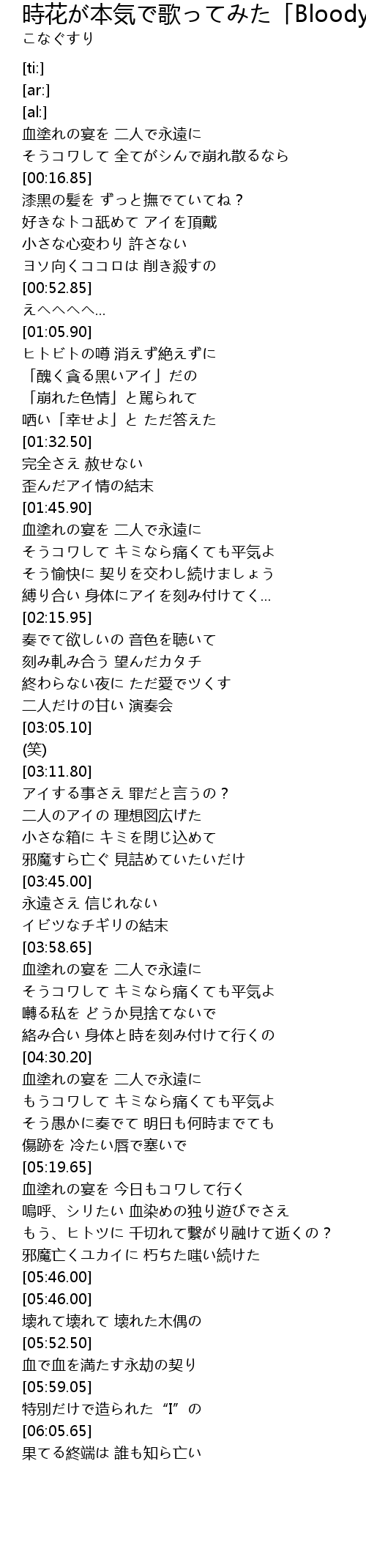 | [00:00.15] | 血塗れの宴を 二人で永遠に |