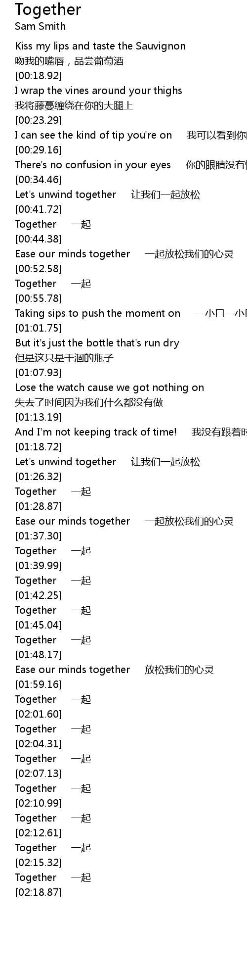 | [01:53.41] | Ease our minds together 放松我们的心灵 |