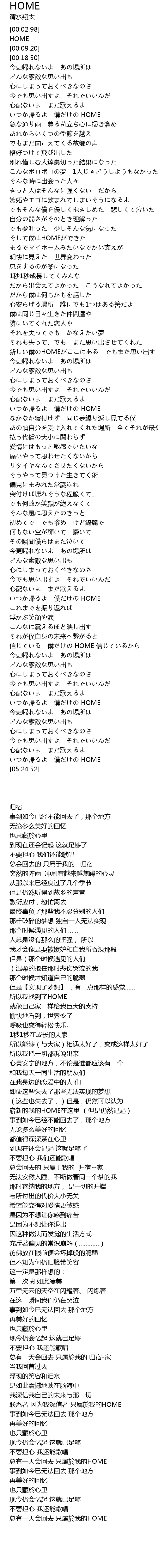 | [04:54.67] | いつか帰るよ 僕だけの HOME |