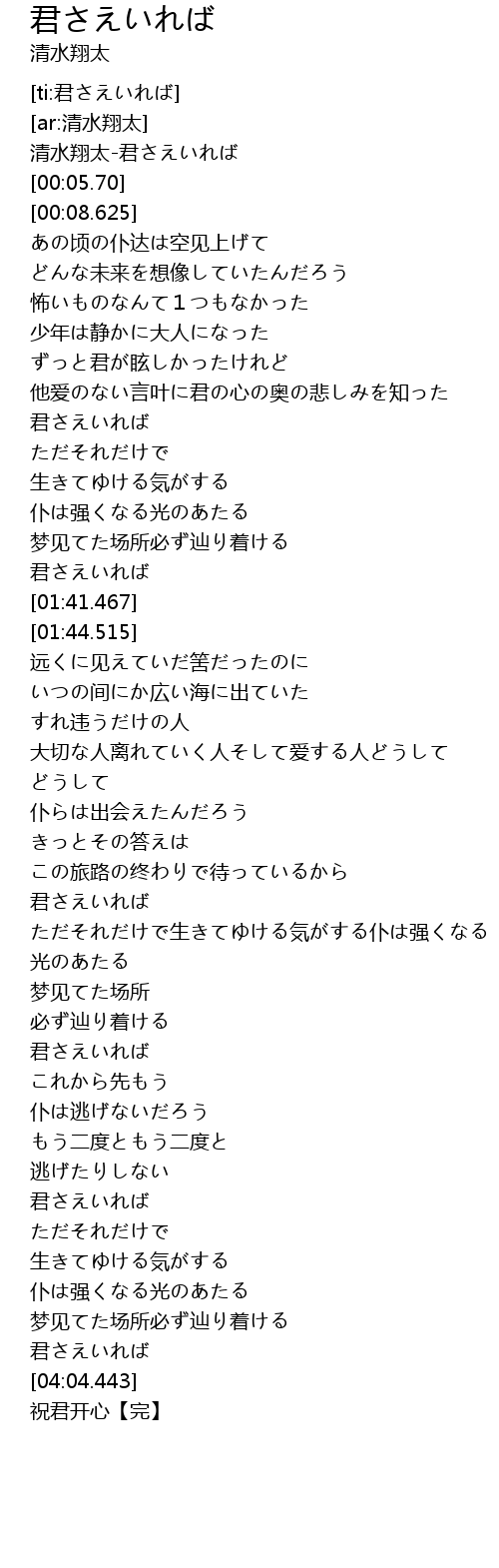 | [01:38.522] | 君さえいれば |