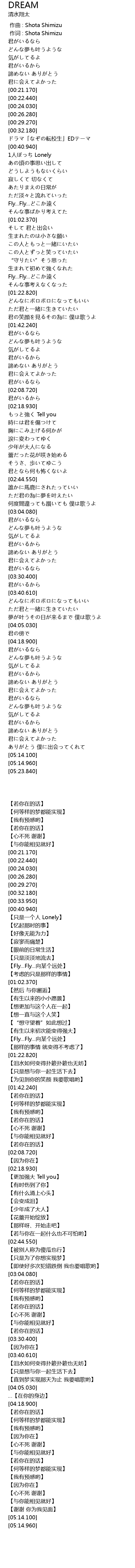 | [00:00.186] | 作词 : Shota Shimizu |