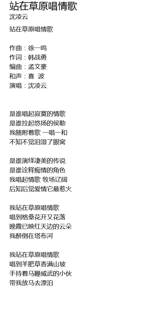 | wǒ zhàn zài cǎo yuán chàng qíng gē | |
