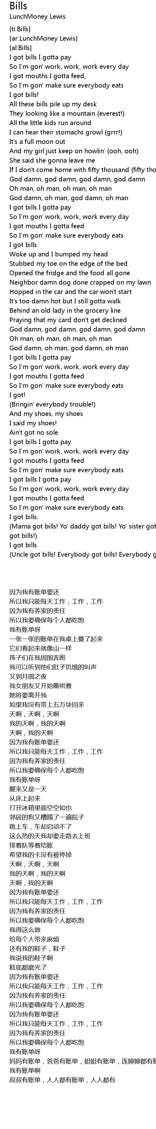 (Mama got bills! Yo' daddy got bills! Yo' sister got bills! Yo' auntie got bills!) |