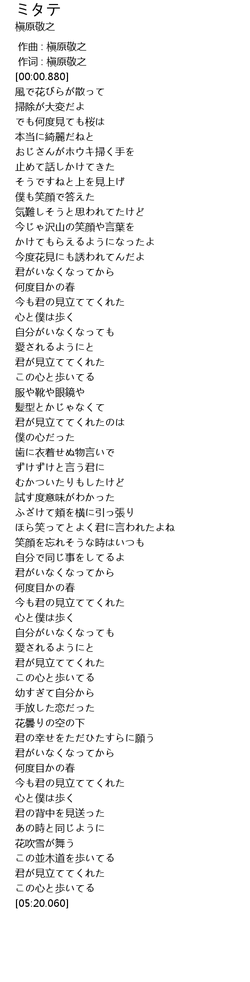 | [00:00.00] | 作曲 : 槇原敬之 |