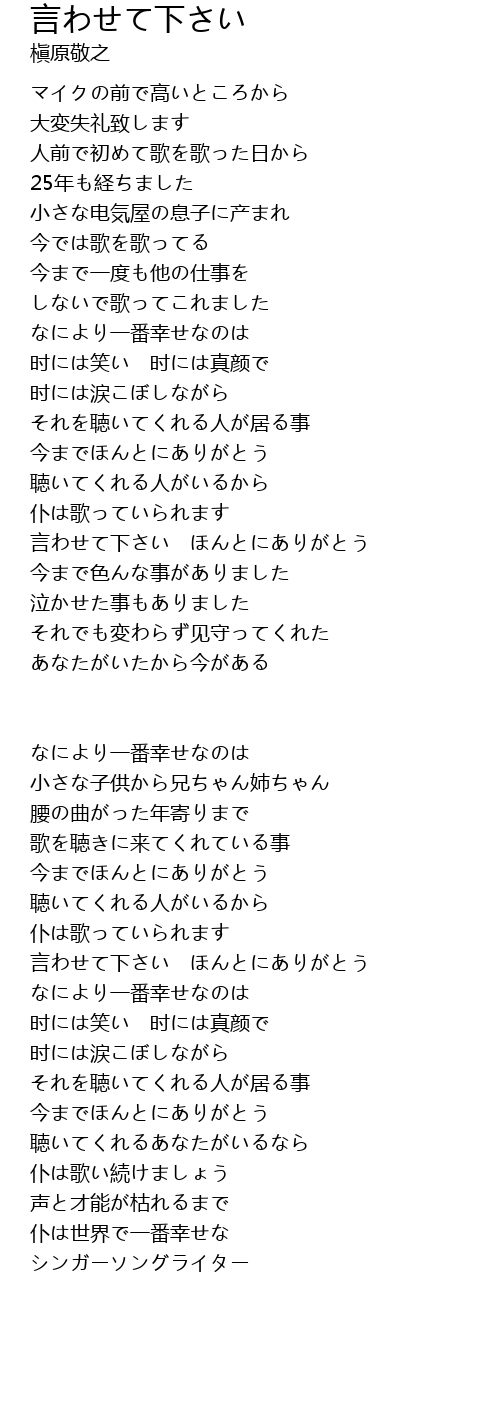 | 言わせて下さい ほんとにありがとう | |