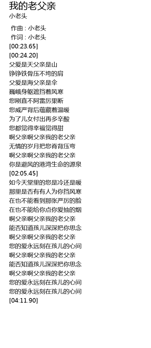 | [03:05.43] | 啊父亲啊父亲我的老父亲 |