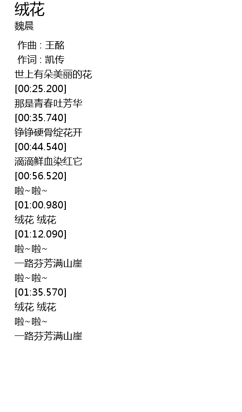 | [01:36.200] | 绒花 绒花 |