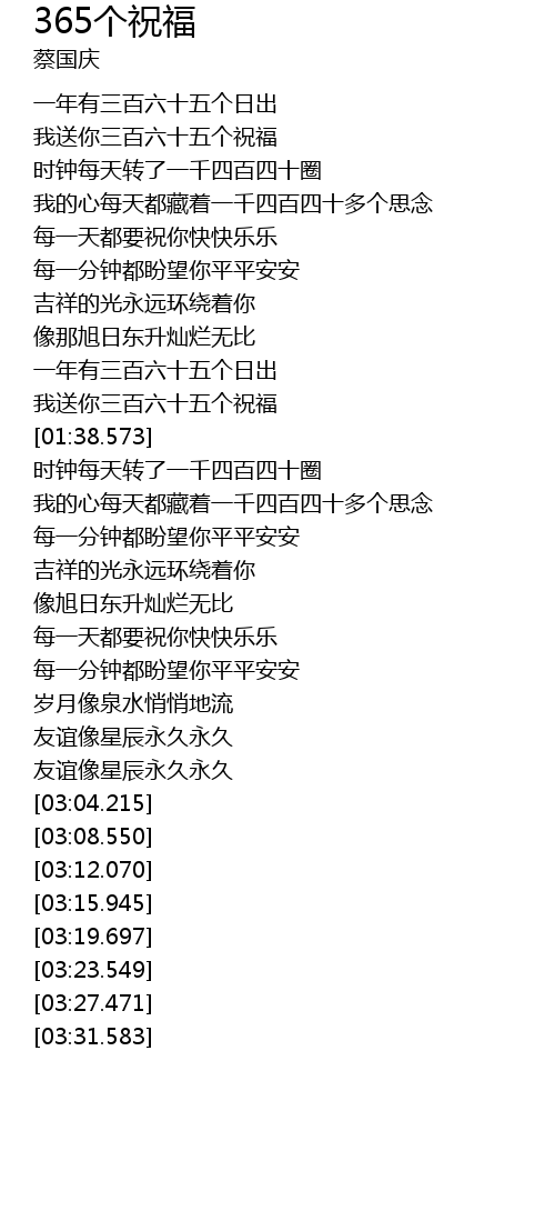 | [01:34.980] | 我送你三百六十五个祝福 |
