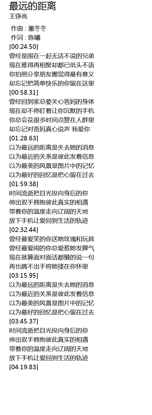 | [02:22.13] | 放下手机让爱回到生活的轨迹 |
