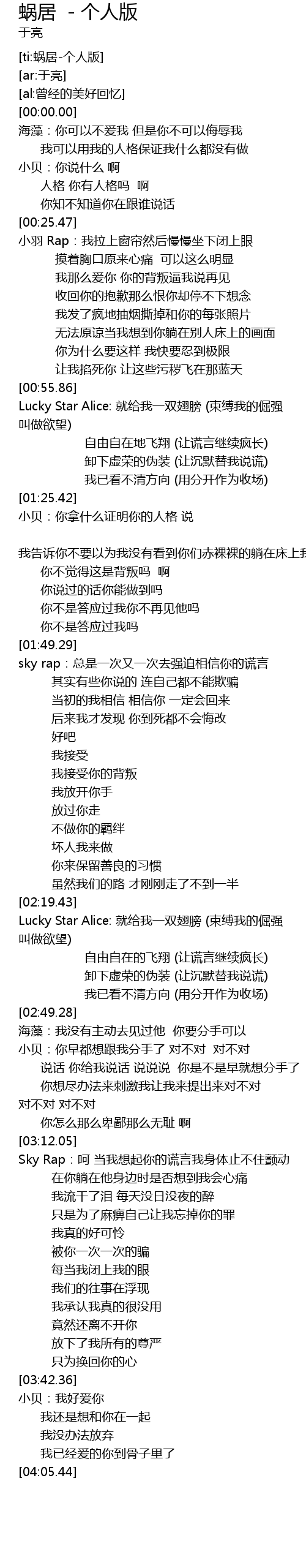 | [02:53.69] | 小贝:你早都想跟我分手了 对不对 对不对 |