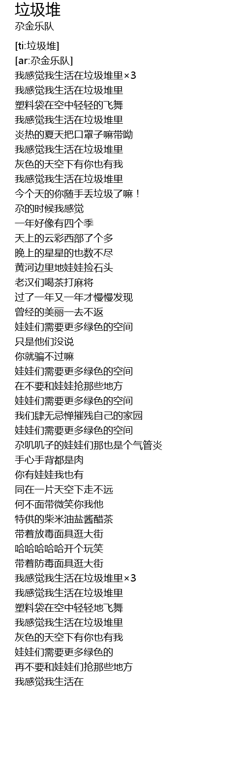 | [00:05.700] | 我感觉我生活在垃圾堆里×3 |