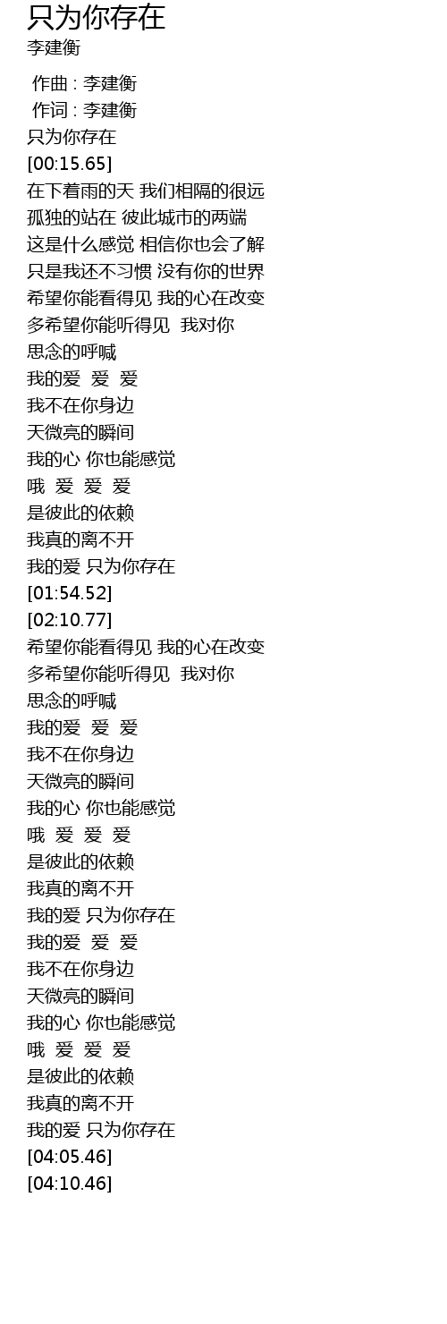 | [03:57.46] | 我的爱 只为你存在 |