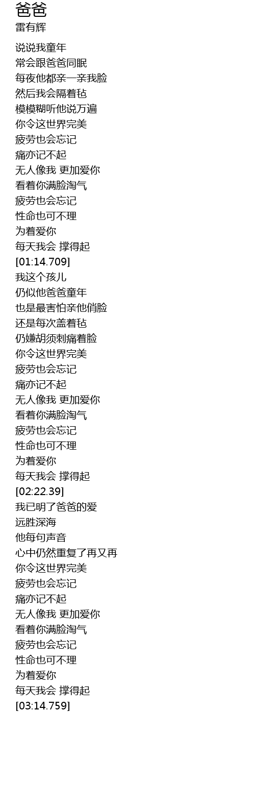 | [01:29.119] | reng shi ta ba ba tong nian |