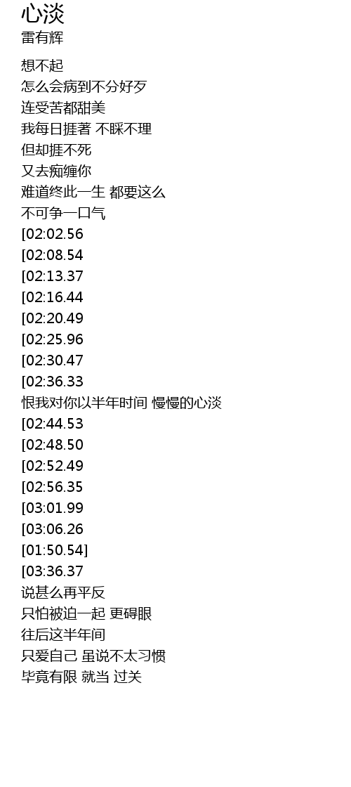 | [02:40.41][03:36.37] | 限我对你以半年时间 慢慢的心淡 |
