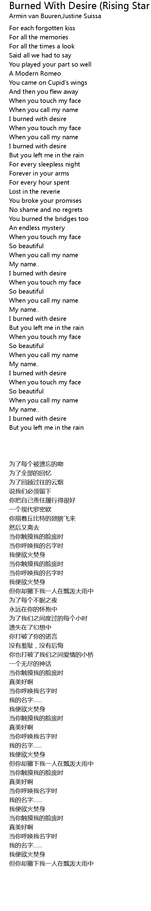 Song Burned With Desire (Rising Star Mix)