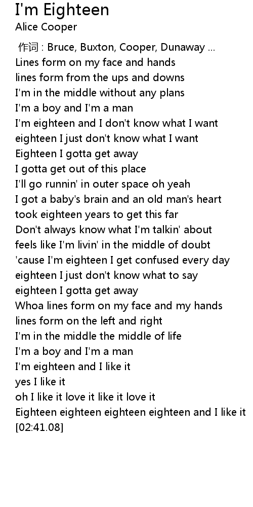 | [01:32.45] | 'cause I'm eighteen I get confused every day |