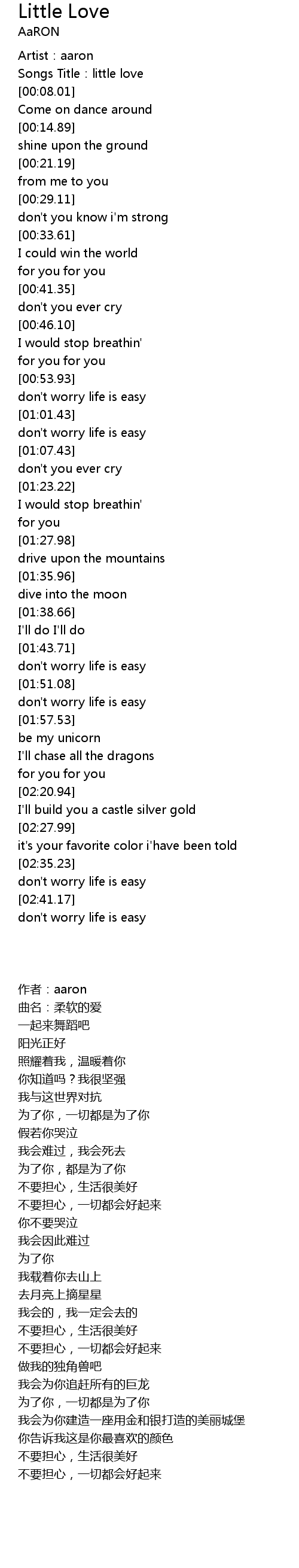 | [00:01.97] | Artist:aaron |