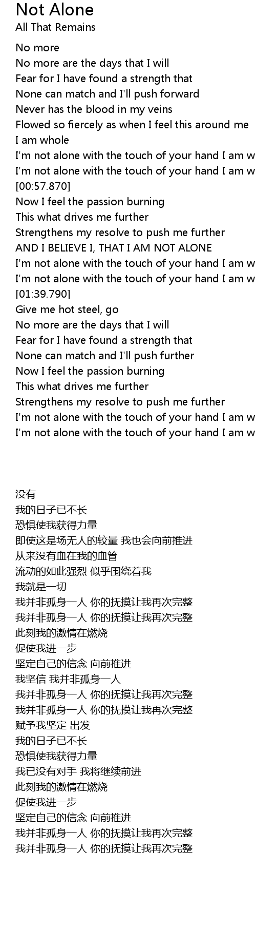 I'm not alone with the touch of your hand I am whole again |