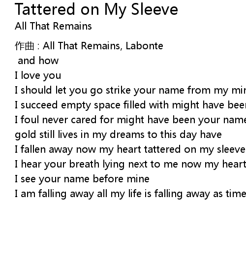 | I hear your breath lying next to me now my heart tattered on my sleeve will | |