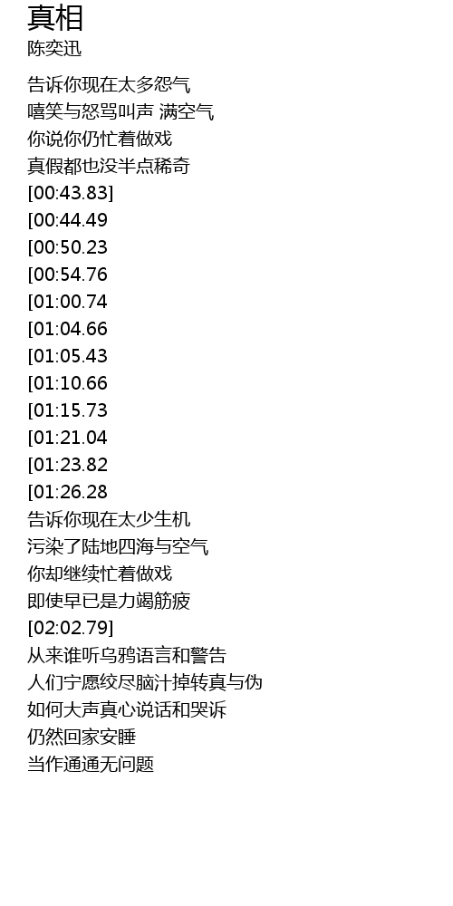 | [02:29.71] | 人们宁愿绞尽脑汁掉转真与伪 |