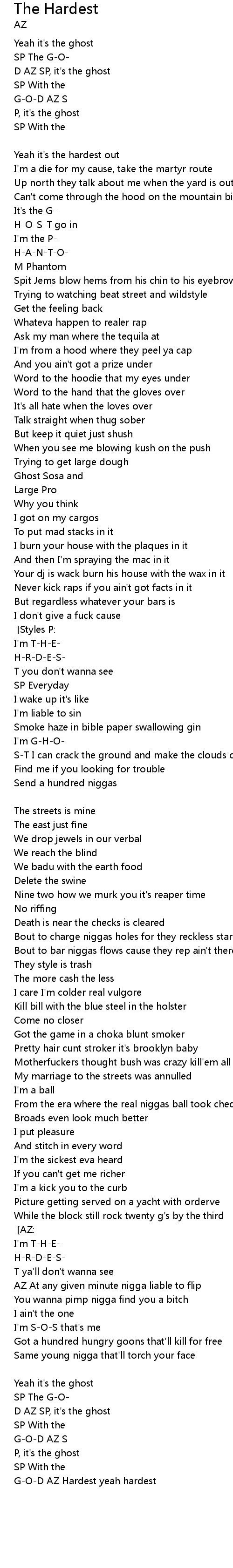 G-O-D AZ Hardest yeah hardest [Styles P:] |