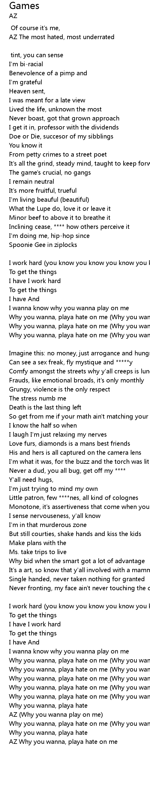 AZ Why you wanna, playa hate on me |