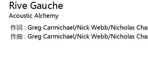 | [00:00.000] | zuo ci : Greg Carmichael Nick Webb Nicholas Charles William Webb |