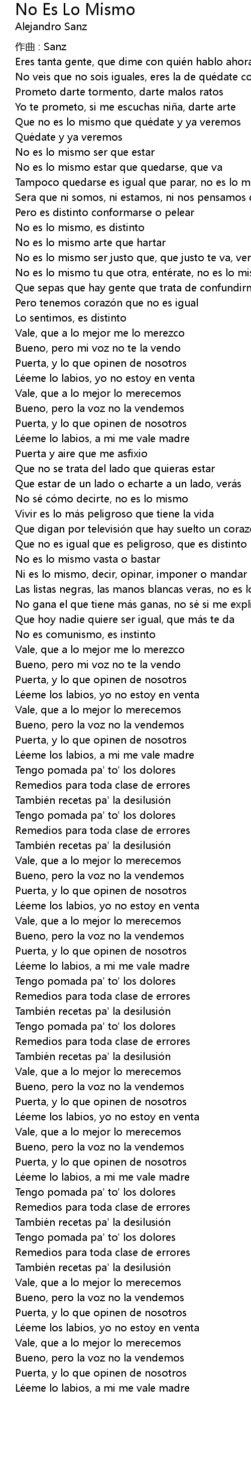 | No es lo mismo tu que otra, ente rate, no es lo mismo | |