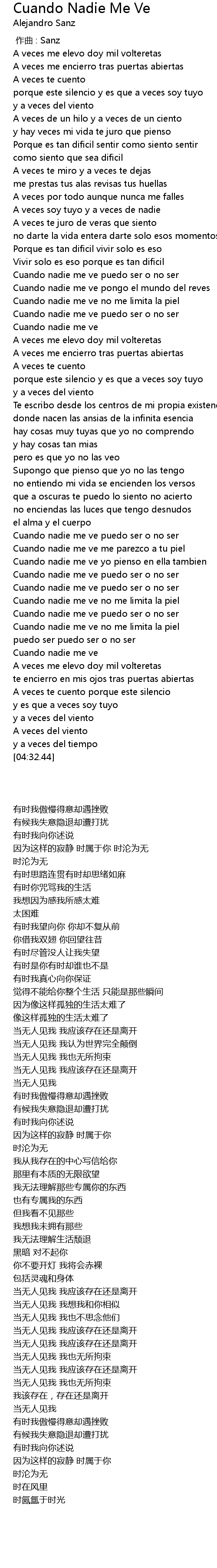 | [03:19.22] | Cuando nadie me ve puedo ser o no ser |