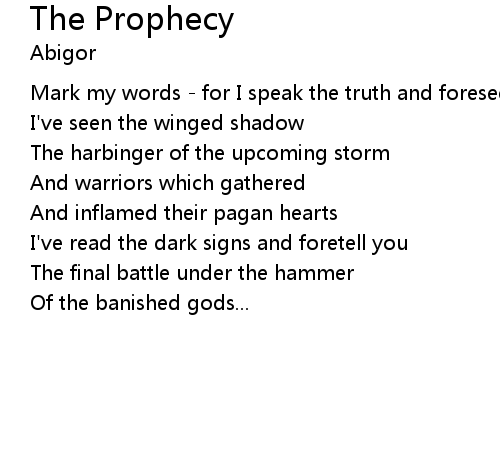 | Mark my words - for I speak the truth and foresee | |