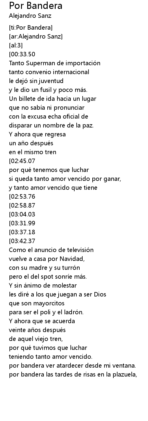 | [01:32.12][03:31.99] | por bandera ver atardecer |