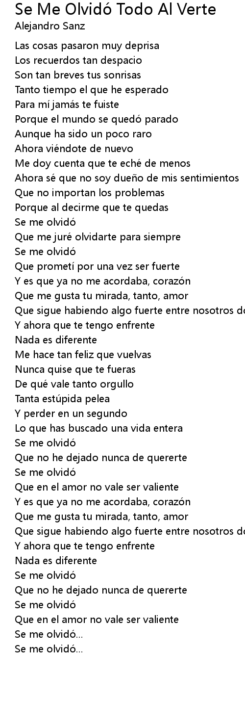| Song | Se Me Olvidó Todo Al Verte |