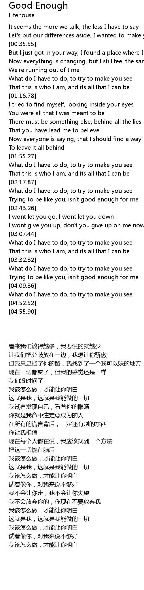 | [02:32.79] | Trying to be like you, isn't good enough for me |